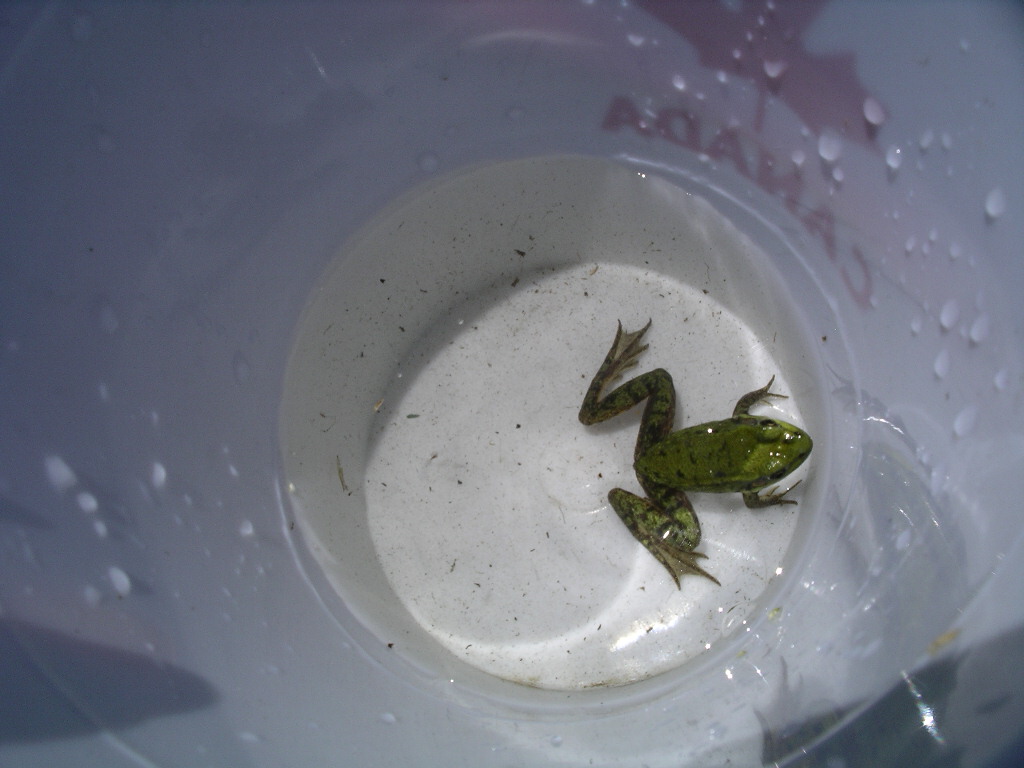 We checked him out for a few minutes and then let him hop back into his watery habitat.