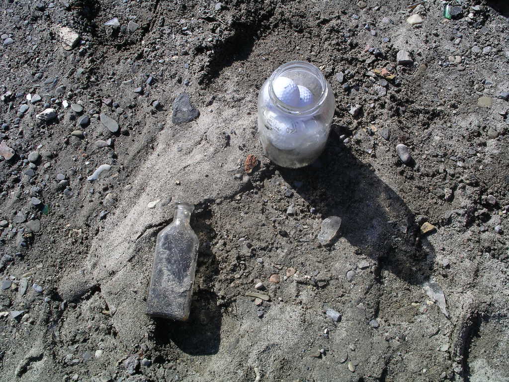 We also found a very old medicine bottle that was a little cracked, but otherwise in good condition considering its age. Duncan scored a jar filled with golfballs. It looked like someone else had found them and just left them there. I'd like to get some junky old golf clubs in the summer so we can put put around the backyard.